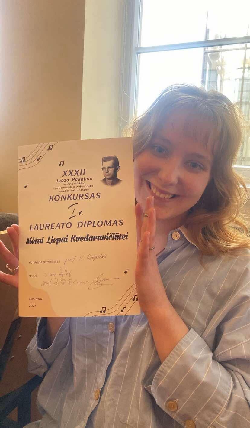 Sveikiname XXXII J. Pakalnio respublikinio jaunųjų atlikėjų pučiamaisiais ir mušamaisiais muzikos instrumentais konkurso, vykusio 2025 m. balandžio 12 d. Kauno Juozo Gruodžio konservatorijoje, laureatus: