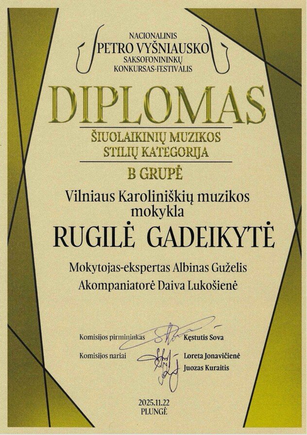 Petro Vyšniausko saksofonininkų konkurso diplomantė