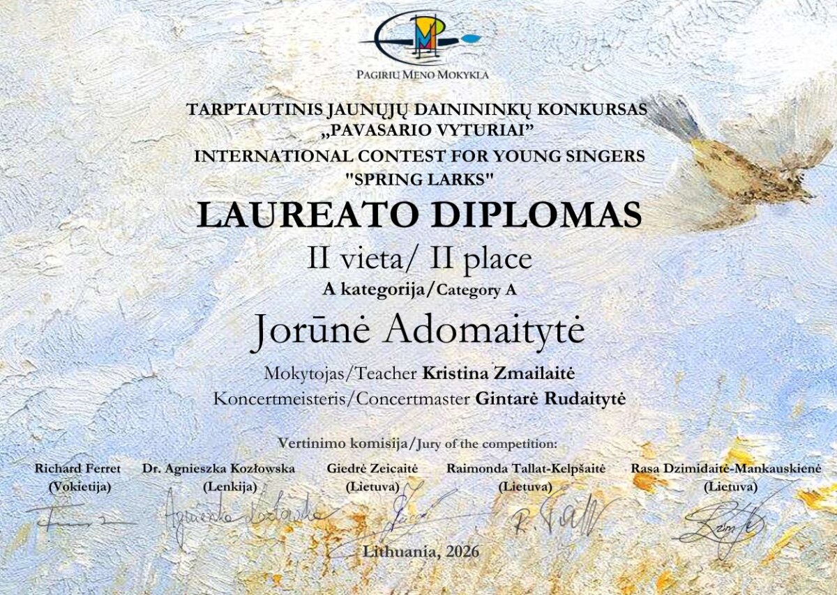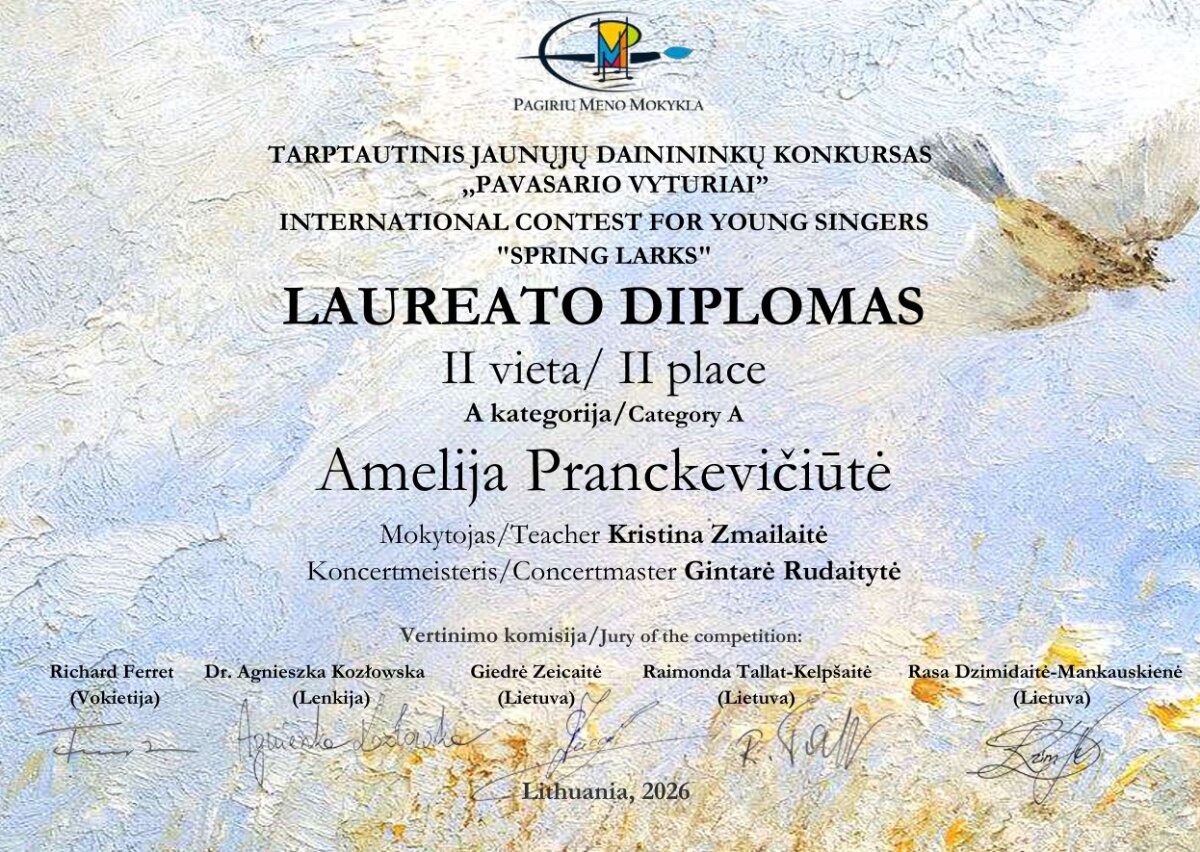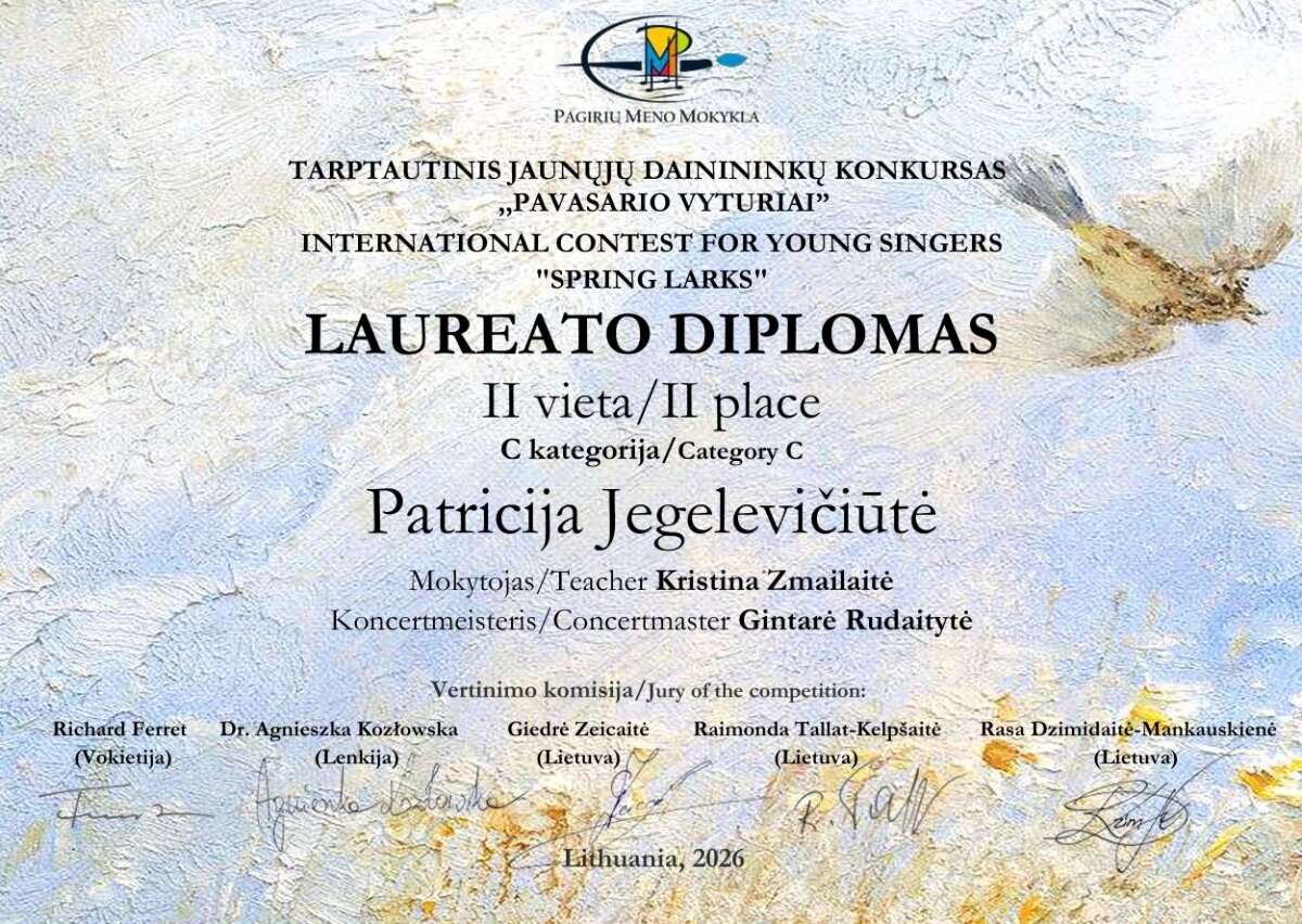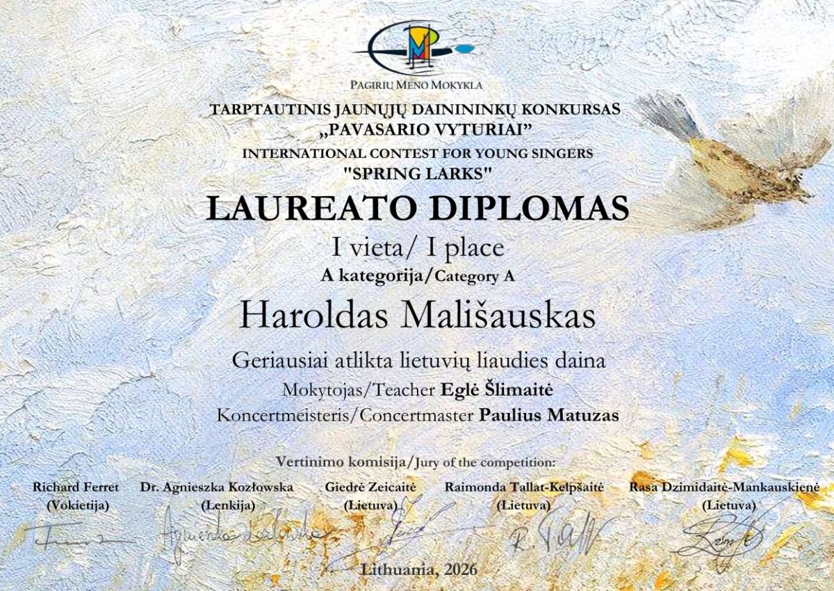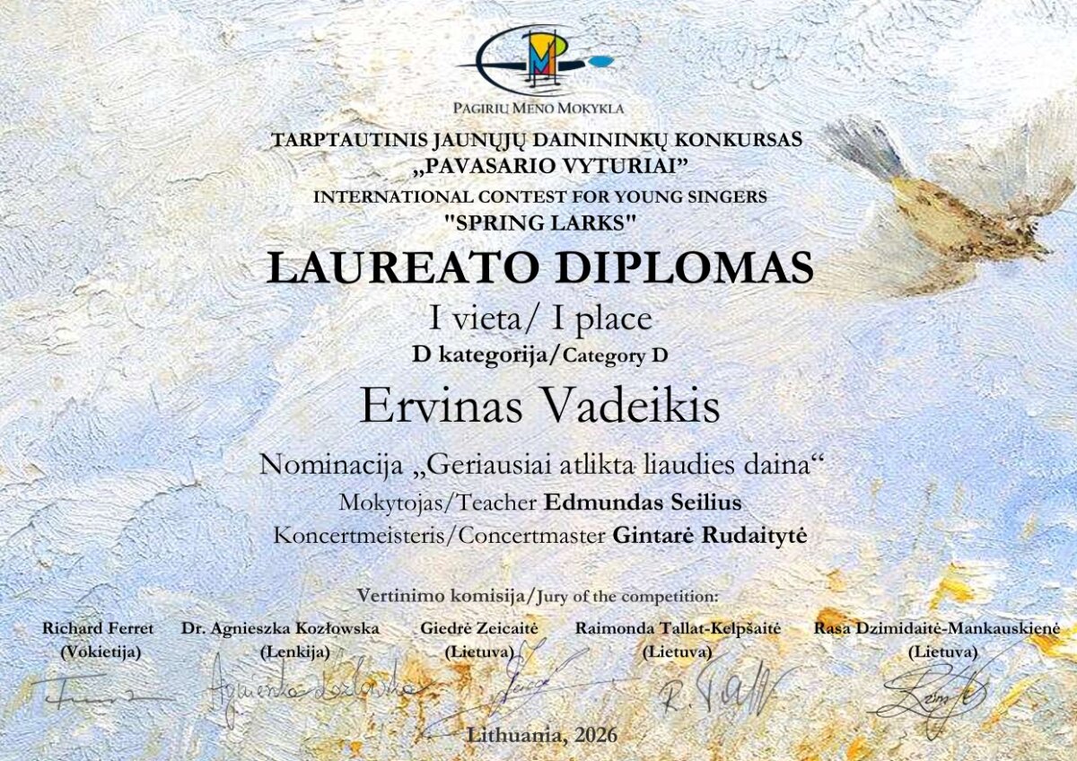 Sveikiname tarptautinio jaunųjų dainininkų konkurso „Pavasario vyturiai“ laureatus: