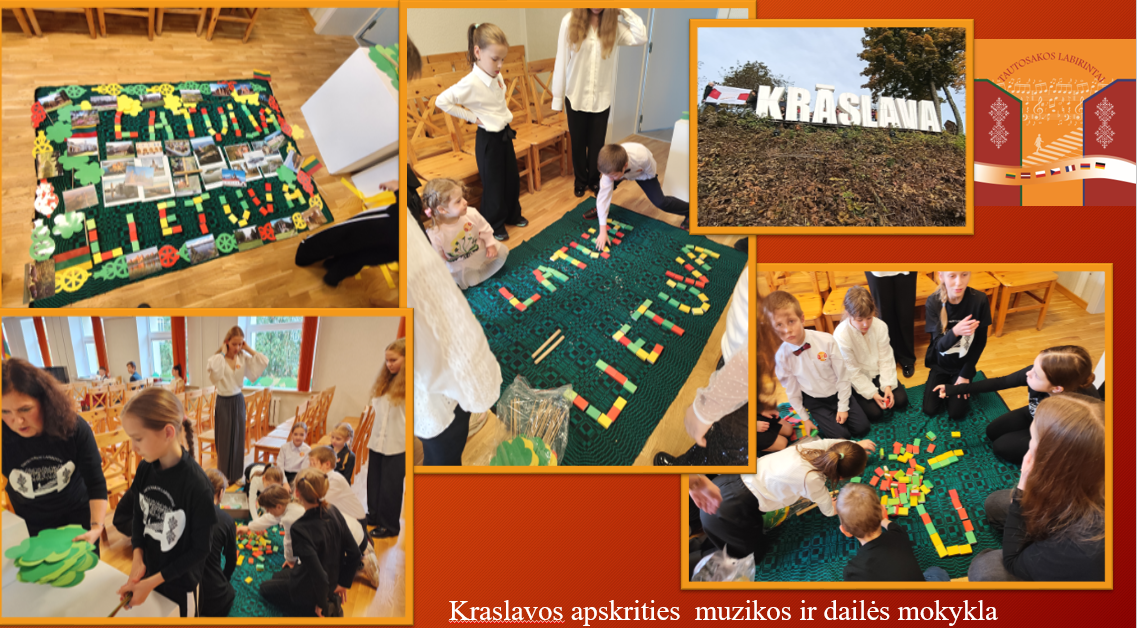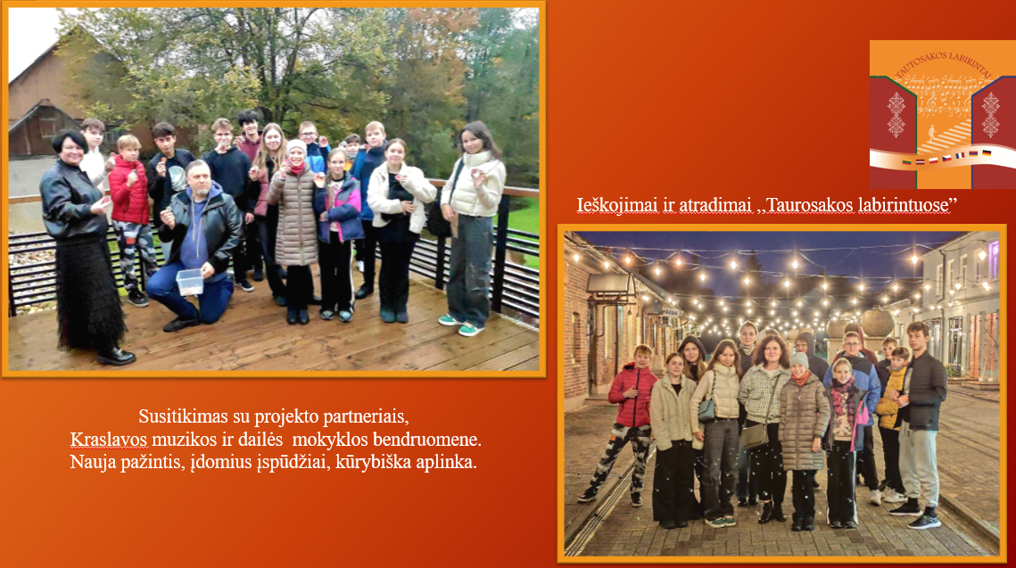 Papietavę Daugpilyje, projekto dalyviai ir mokytojai išvažiavo į Kraslavos muzikos ir dailės mokyklą. Kelionės metu gidas Arnis Stankevičius (UAB ,,Valandėlė“ vadovas) įdomiai pasakojo apie Latgalių krašto istoriją, papročius. Kraslavos miestas įsikūręs Dauguvos vingyje, tarp kalvų. Mokytojas Raimonds Ungurs, užaugęs Kraslavoje, dalinosi vaikystės prisiminimais, pasakojo apie Kraslavos muzikos mokyklą, kurioje mokėsi groti akordeonu. Būtent mokytojo R. Ungurs dėka vyko gražus bendradarbiavimas su Kraslavos muzikos mokykla, pasirašyta bendradarbiavimo sutartis dėl bendros tarptautinio vaikų ir jaunimo projekto ,,Tautosakos labirintai“ meninės programos įgyvendinimo.