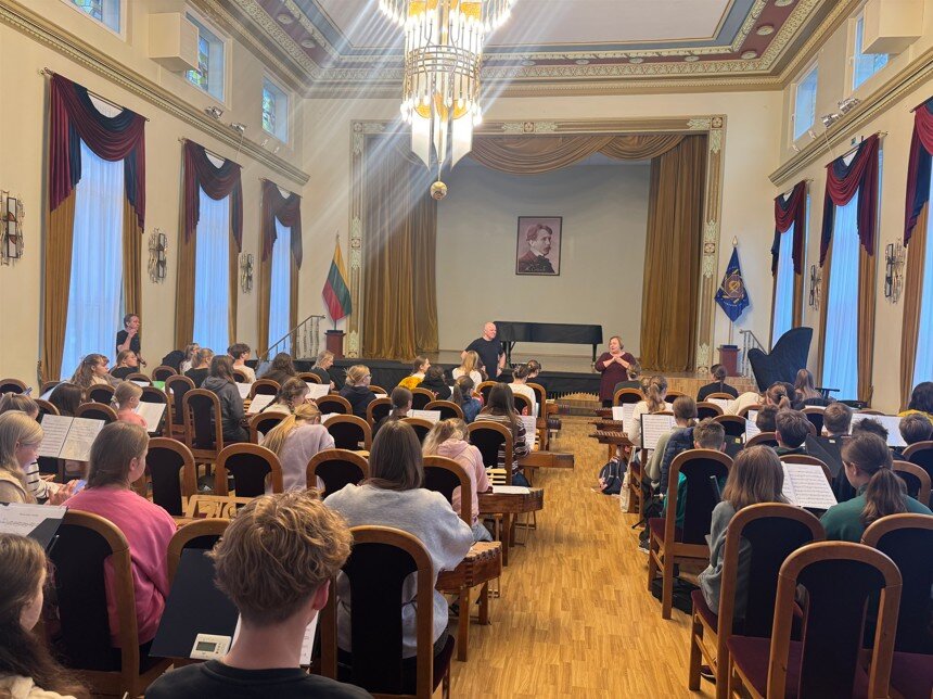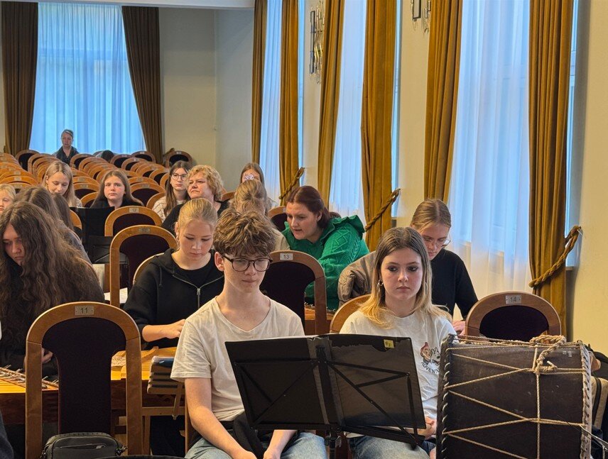 Š. m. spalio 11 dieną Nacionalinėje M. K. Čiurlionio menų mokykloje įvyko pirmoji 2026 m. moksleivių dainų šventės ,,Laiku. Ratu. Kartu“ ansamblių vakaro ,,Metų ritmu“ jungtinio mokinių liaudies instrumentų orkestro repeticija. Joje dalyvavo ir Vilniaus Karoliniškių muzikos mokyklos liaudies instrumentų orkestras. Džiaugiamės nuskambėjusiais pirmaisiais akordais ir su įkvėpimu nuosekliai ruošimės toliau. Dėkojame organizatoriams už suteiktą galimybę augti, tobulėti bei būti bendruomenės dalimi.