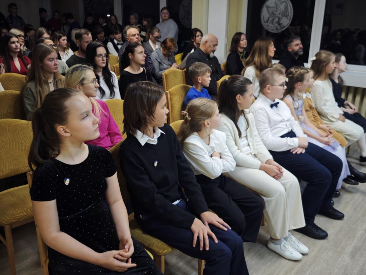 2025 m. spalio 8 d. Mokyklos salėje penktokams, baigusiems Pradinio formalųjį šv... -