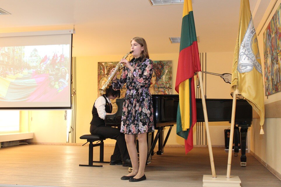 Renginį iškilmingai pradėjo mokytoja Indrė Jonaitytė, kurios trimitu atlikta „Tautinė giesmė“ suvienijo salę bendrai pagarbos minutei. Koncerte skambėjo plati žanrų ir instrumentų paletė, atspindinti mokyklos bendruomenės kūrybiškumą.
